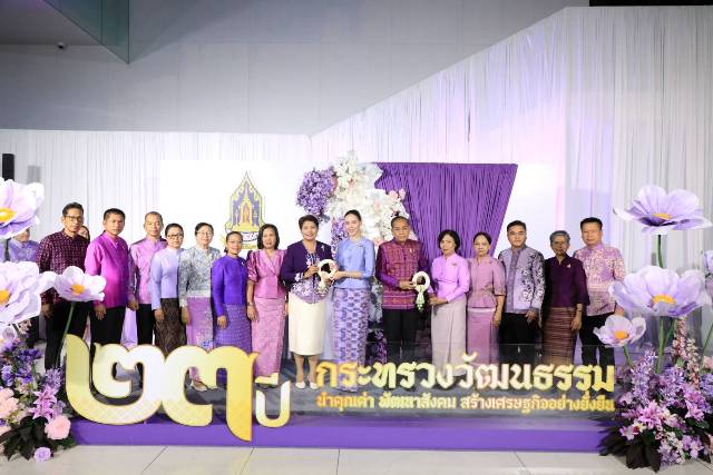 วันที่ 3 ตุลาคม 2568 เวลา 07.30 น. นางสาวซาบีดา ไทยเศรษฐ์ รัฐมนตรีว่าการกระทรวงวัฒนธรรม (รมว.วธ.) เดินทางไปยังสถานที่ประดิษฐานสิ่งศักดิ์สิทธิ์ประจำกระทรวงวัฒนธรรม และมอบหมายนายประสพ เรียงเงิน ปลัดกระทรวงวัฒนธรรม ประกอบพิธีสักการะสิ่งศักดิ์สิทธิ์ตามสถานที่ต่างๆ โดยรอบบริเวณกระทรวงวัฒนธรรม ได้แก่ พระพุทธสิริวัฒนธรรโมภาส พระสยามเทวาธิราช และศาลตา–ยาย โดยมีพระครูญาณสยมภูว์ ประธานพระครูพราหมณ์ ประกอบพิธีบวงสรวงฯ พร้อมด้วยพิธีบำเพ็ญกุศลทางศาสนา เพื่อสร้างความเป็นสิริมงคล เนื่องในวันสถาปนากระทรวงวัฒนธรรม ครบรอบ 23 ปี 3 ตุลาคม 2568