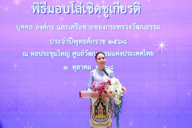 รัฐมนตรีว่าการกระทรวงวัฒนธรรม กล่าวย้ำว่า การมอบรางวัลครั้งนี้เป็นการสร้างขวัญและกำลังใจแก่ผู้ทำคุณประโยชน์ด้านศาสนา ศิลปะ และวัฒนธรรม อีกทั้งสนับสนุนพลังคนรุ่นใหม่ในการสืบสานและพัฒนาศิลปวัฒนธรรมไทย ตลอดจนเป็นพลังช่วยขับเคลื่อนนโยบายและภารกิจของกระทรวงวัฒนธรรมให้บรรลุเป้าหมาย พร้อมทั้งตอกย้ำวิสัยทัศน์ในการใช้วัฒนธรรมขับเคลื่อนเศรษฐกิจ สร้างอาชีพ รายได้ และเผยแพร่ศิลปวัฒนธรรมไทยสู่ระดับสากลอย่างยั่งยืน