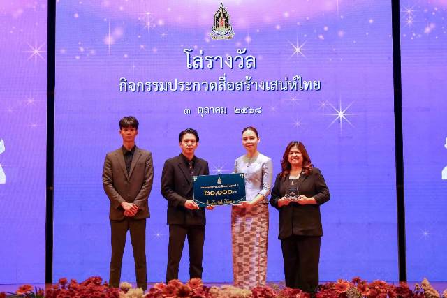 นอกจากนี้ 5 สุดยอดรางวัล “สื่อสร้างเสน่ห์ไทย” ปี 2568 ประกอบด้วย รางวัลใหญ่ “สุดยอดสื่อสร้างเสน่ห์ไทย” มอบให้ผลงาน “เชิด…เสน่ห์กรุงเทพฯ” ทีมลูกนก จากมหาวิทยาลัยเกษมบัณฑิต พร้อมเงินรางวัล 50,000 บาท และอีก 4 ผลงานได้รับรางวัล “สื่อสร้างเสน่ห์ไทยสร้างสรรค์” พร้อมเงินรางวัล 20,000 บาท ได้แก่ ผลงาน “น้ำใจไทยเสน่ห์ครองใจคนทั่วโลก” ทีม CS STUDIO จากโรงเรียนนครพนมวิทยาคม, “ศิลปะสกุลช่างเมืองเพชร” ทีม Petch Story จากมหาวิทยาลัยราชภัฏเพชรบุรี, “เสน่ห์ของบ้านผม” ทีมเด็กนิเทศ มมส. มหาวิทยาลัยมหาสารคาม และ “โนรา (Nora, Dance Drama in Southern Thailand)” ทีมไข่เค็มอคาเดมี จากมหาวิทยาลัยราชภัฏสุราษฎร์ธานี