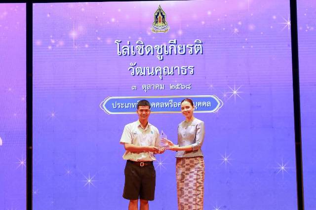 ช่วงบ่าย วธ. จัดพิธีมอบโล่ “วัฒนคุณาธร” ประจำปี 2568 ณ หอประชุมใหญ่ ศูนย์วัฒนธรรมแห่งประเทศไทย ยกย่องผู้ทำคุณประโยชน์ด้านศาสนา ศิลปะ และวัฒนธรรม รวม 160 ราย/แห่ง/คณะ แบ่งเป็นบุคคลธรรมดา 81 ราย และนิติบุคคลหรือคณะ 79 แห่ง พร้อมมอบรางวัลประกวด “สื่อสร้างเสน่ห์ไทย” 5 ผลงาน มอบโล่สำนักงานวัฒนธรรมจังหวัดดีเด่น 10 แห่ง และรางวัลกลุ่มอำนวยการพิธีการศพที่ได้รับพระราชทานดีเด่น 3 รางวัล โดยภายในงานมีการแสดงทางวัฒนธรรมและการฉายวีดิทัศน์ “วัฒนคุณาธร 2568”