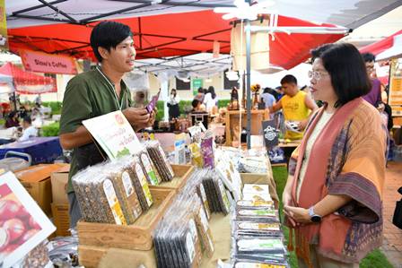 อธิบดีกรมทรัพย์สินทางปัญญา กล่าวเพิ่มเติมว่า การสนับสนุนช่องทางจำหน่ายสินค้า GI ในลักษณะดังกล่าว เป็นหนึ่งในกิจกรรมที่กรมฯ ให้ความสำคัญอย่างยิ่ง เพราะช่วยสร้างรายได้และโอกาสทางการค้าให้กับผู้ประกอบการท้องถิ่นมาอย่างต่อเนื่อง และมักได้รับผลตอบรับที่น่าประทับใจจากผู้ร่วมงาน อาทิ งาน Thailand Coffee Fest and Rice Fest งาน Thaifex – Anuga Asia งานแจ๋วแซ่บเฟ่อร์ เป็นต้น ซึ่งกรมฯ ต้องขอขอบคุณหน่วยงานพันธมิตรทุกแห่งที่มองเห็นความสำคัญของสินค้า GI ไทย และร่วมสนับสนุนโอกาสให้กับเกษตรกรและผู้ประกอบการไทยในการสร้างรายได้อย่างยั่งยืน