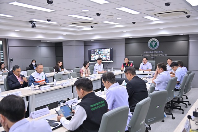 2) จังหวัดที่น้ำยังท่วม (สุโขทัย พิจิตร พิษณุโลก อ่างทอง เพชรบูรณ์) ให้รักษาความต่อเนื่องของบริการสาธารณสุข โดยจัดหาและสำรองยา เวชภัณฑ์ ให้เพียงพอ จัดตั้งหน่วยแพทย์เคลื่อนที่/หน่วยปฏิบัติการฉุกเฉิน ในพื้นที่ที่ถูกตัดขาดและศูนย์อพยพ ป้องกันผลกระทบที่อาจมีต่อโรงพยาบาล เช่น ระบบไฟฟ้า เครื่องปั่นไฟ ระบบน้ำสะอาด และระบบบำบัดน้ำเสีย และเตรียมอพยพผู้ป่วยหนักในพื้นที่เสี่ยงสูงไปยังพื้นที่ปลอดภัย/รพ.สนาม 3) จังหวัดรอรับน้ำเพิ่ม (ชัยนาท อยุธยา ปทุมธานี นนทบุรี กทม. สมุทรปราการ) ให้สถานบริการในพื้นที่ลุ่มต่ำ/นอกคันกั้นน้ำ เตรียมพร้อมขนย้ายเวชภัณฑ์และอุปกรณ์ขึ้นที่สูง เตรียมจุดอพยพด้านการแพทย์และบริการปฐมพยาบาล ทบทวนแผนอพยพผู้ป่วยไปยังพื้นที่ปลอดภัย และ 4) ให้ทุกจังหวัดติดตามสถานการณ์และเฝ้าระวังฝนตกหนัก น้ำป่า น้ำล้นตลิ่ง จากอิทธิพลของพายุ “แมตโม” จนกว่าเหตุการณ์จะเข้าสู่ภาวะปกติ ทั้งนี้ หากสถานการณ์ขยายเพิ่มจนส่งผลกระทบรุนแรง จะเปิดศูนย์ปฏิบัติการฉุกเฉินด้านการแพทย์และสาธารณสุขในระดับกระทรวง (Public Health Emergency Operations Center : PHEOC) เพื่อสนับสนุนทีมปฏิบัติการฉุกเฉินและทรัพยากรจากส่วนกลางเพิ่มเติม