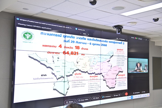 วันที่ 7 ตุลาคม 2568 นายพัฒนา พร้อมพัฒน์ รัฐมนตรีว่าการกระทรวงสาธารณสุข กล่าวถึงสถานการณ์อุทกภัย วาตภัย และดินโคลนถล่ม จากอิทธิพลของพายุบัวลอยและแมตโม ว่า มีพื้นที่ได้รับผลกระทบรวม 64 อำเภอ 273 ตำบล 1,801 หมู่บ้าน ใน 19 จังหวัด มีผู้เสียชีวิต 15 ราย สาเหตุหลักจากการพลัดตกน้ำและถูกน้ำพัด ผู้สูญหาย 1 ราย และบาดเจ็บ 98 ราย ส่วนสถานบริการสาธารณสุขได้รับผลกระทบสะสม 33 แห่ง แบ่งเป็น รพ.สต. 28 แห่ง, โรงพยาบาล 4 แห่ง (รพ.แม่สะเรียง, รพ.สบเมย, รพ.ตรอน, รพ.สมเด็จพระยุพราชสะพานหิน) และ สสอ. 1 แห่ง ในจำนวนนี้ ปิดบริการ 1 แห่ง คือ รพ.สต.ผักขวง จ.อุตรดิตถ์ ปิดบางส่วน คือ รพ.สต.น้ำไคร้ จ.อุตรดิตถ์ ที่เหลือ 31 แห่ง ยังคงให้บริการได้ตามปกติ กระทรวงสาธารณสุขได้ส่งทีมเข้าซ่อมบำรุงเครื่องมือแพทย์ที่ชำรุดเสียหาย ระบบไฟฟ้า ยานพาหนะ ระบบน้ำสะอาด และระบบบำบัดน้ำเสีย รวมถึงตรวจสอบความปลอดภัยอาคารสถานที่ เพื่อไม่ให้บริการทางการแพทย์ต้องหยุดชะงัก พร้อมทั้งปรับบริการให้ประชาชนเข้าถึงได้ต่อเนื่อง โดยมาตรการเร่งด่วน ได้จัดตั้งหน่วยแพทย์เคลื่อนที่และหน่วยปฏิบัติการฉุกเฉินในพื้นที่ที่ถูกตัดขาด รวมถึงจัดทีมแพทย์ดูแลในจุดอพยพ สนับสนุนยาและเวชภัณฑ์ที่จำเป็น รวมกว่า 98,334 รายการ และส่วนกลางเตรียมสนับสนุนเพิ่มเติมตามได้รับการร้องขอ