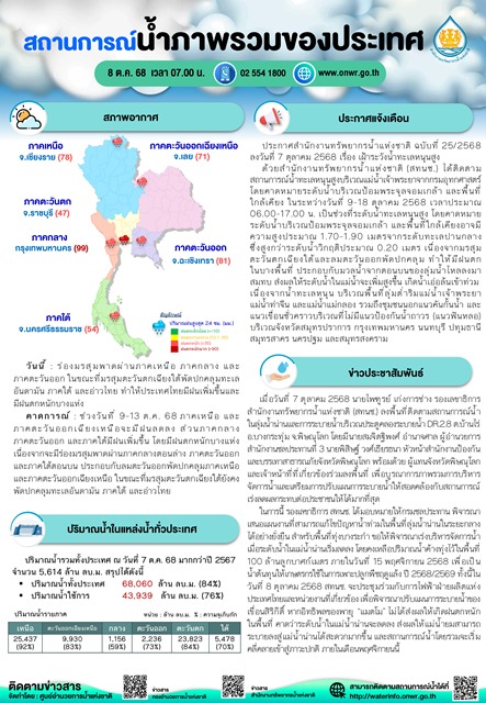 3. ประกาศแจ้งเตือน : ประกาศสำนักงานทรัพยากรน้ำแห่งชาติ ฉบับที่ 25/2568 ลงวันที่ 7 ตุลาคม 2568 เรื่อง เฝ้าระวังน้ำทะเลหนุนสูง