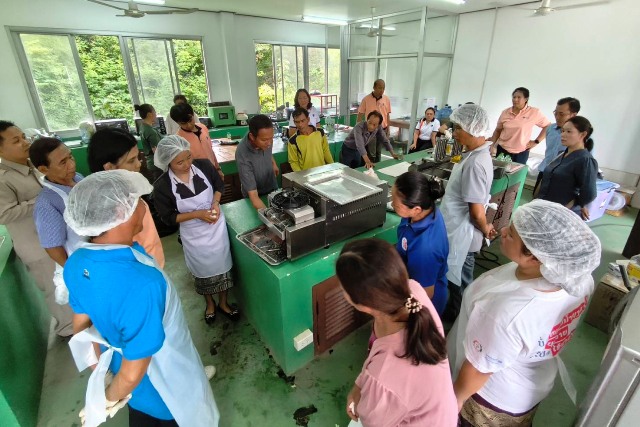 นอกจากนี้ คณะผู้บริหาร นักวิจัย และบุคลากร วว. ประกอบด้วย ดร.บุณณนิดา โสดา ผอ.กองวิเทศสัมพันธ์ ดร.ราเชนทร์ วิสุทธิแพทย์ นักวิจัยอาวุโส ศูนย์ความหลากหลายทางชีวภาพ นางเรวดี มีสัตย์ นักวิจัยอาวุโสและนายวีรยุทธ พรหมจันทร์ นักวิจัย ศูนย์เชี่ยวชาญนวัตกรรมอาหารสุขภาพ นางสาวสุภาวดี บัวบานและนางสาวณัฐฐพัชร์ อั้นทรัพย์ กองบริการธุรกิจนวัตกรรม สำนักจัดการเทคโนโลยีและนวัตกรรม นายอภินันท์ จันทรา นักประชาสัมพันธ์ กองประชาสัมพันธ์ สำนักสื่อสารองค์กร และนายปิยะพงษ์ นีรนาทวรุตม์กุล นักทดลองวิทยาศาสตร์วิจัย ศูนย์เชี่ยวชาญนวัตกรรมหุ่นยนต์และเครื่องจักรกลอัตโนมัติ และผู้แทนจาก มหาวิทยาลัยสุภานุวงศ์ ได้แก่ 1. Asst.Prof.Viraxay Bandavong Head of Department Food Science and Technology, Faculty of Agriculture and Forest Resource, Souphanouvong University, Luang Prabang Province, Lao PDR. 2. Mrs. Chanda Phonemany academy of Department Food Science and Technology, Faculty of Agriculture and Forest Resource, Souphanouvong University, Luang Prabang Province, Lao PDR. ได้ร่วมเดินทางลงพื้นที่เยี่ยมชมวิถีชุมชนหมู่บ้านม่วงคำ หลวงพระบาง สปป.ลาว ซึ่งเป็นหมู่บ้านที่ประกอบอาชีพเกษตรกรรม โดยการสร้างรายได้จากผลิตภัณฑ์สาหร่ายไกพื้นถิ่นเป็นหลัก เพื่อถ่ายทอดองค์ความรู้ด้านกระบวนการผลิต มาตรฐาน และคุณภาพ ความสำคัญของผู้บริโภค และการใช้ประโยชน์จากนวัตกรรมและเทคโนโลยีของ วว. ตลอดจนการแนะนำด้านบรรจุภัณฑ์ และการตลาดอย่างครบวงจร โดยเฉพาะการดูแลรักษาและการมีส่วนร่วมของชุมชน เพื่อนำไปสู่การพัฒนาอย่างยั่งยืนด้วยองค์ความรู้วิทยาศาสตร์ เทคโนโลยีและนวัตกรรม
