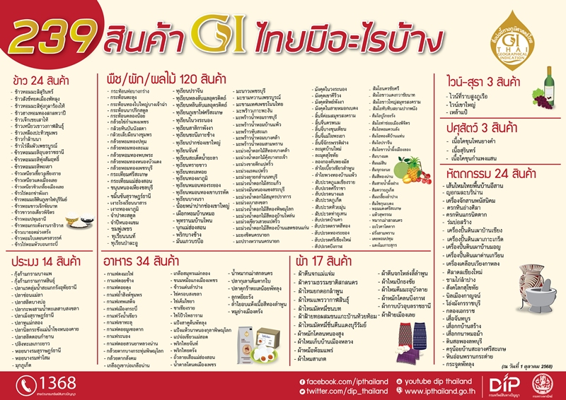 นางอรมน ทรัพย์ทวีธรรม อธิบดีกรมทรัพย์สินทางปัญญา เผยผลสำเร็จของการส่งเสริมสินค้า สิ่งบ่งชี้ทางภูมิศาสตร์ (GI) ในปี 2568 อย่างครบวงจร ตั้งแต่การขึ้นทะเบียน GI การควบคุมคุณภาพการส่งเสริมการตลาด GI ทั้งในไทยและในต่างประเทศ และสร้างความรู้ความเข้าใจในเรื่อง GI ให้กับผู้ประกอบการและประชาชนทั่วไป โดยมีเป้าหมายเพื่อให้สินค้า GI ไทยซึ่งปัจจุบันเป็นที่ยอมรับแล้วว่ามีอัตลักษณ์ มีความพิเศษจากสินค้าทั่วไป จากทั้งเรื่องราวความเป็นมาและคุณภาพของสินค้า สามารถสร้างมูลค่าทางเศรษฐกิจแก่ผู้ประกอบการ ชุมชนที่ผลิตสินค้าได้ โดยในปี 2568 จากจำนวนสินค้า GI ที่ได้รับการขึ้นทะเบียน 239 รายการ สามารถทำมูลค่าได้สูงถึงกว่า 82,000 ล้านบาท