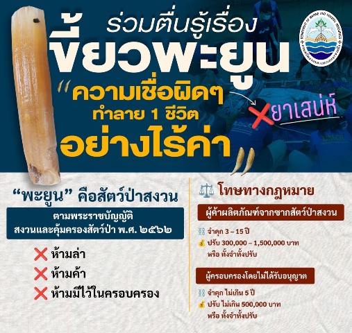 ดร.ปิ่นสักก์ สุรัสวดี อธิบดีกรมทรัพยากรทางทะเลและชายฝั่ง กล่าวว่า กรมฯ ได้หารือร่วมกับกองบังคับการปราบปรามการกระทำผิดเกี่ยวกับทรัพยากรธรรมชาติและสิ่งแวดล้อม (บก.ปทส.) เกี่ยวกับแผนงานโครงการในการป้องกันปราบปรามการตัดเขี้ยวพะยูน พร้อมดำเนินการในมาตรการเชิงรุกแบบบูรณาการ ทั้งภาครัฐ เอกชน และชุมชน ผ่านแนวทางสำคัญ ได้แก่ การเฝ้าระวังและป้องกัน จัดตั้งทีมลาดตระเวนในแหล่งหญ้าทะเล ใช้เทคโนโลยีโดรนและระบบ citizen science ในการติดตามพะยูน และพิจารณาประกาศเขตคุ้มครองใหม่ การช่วยเหลือฉุกเฉิน โดยตั้งทีมกู้ชีพสัตว์ทะเล พร้อมสัตวแพทย์ประจำในโรงพยาบาลสัตว์ทะเลหายาก (ภูเก็ต/ตรัง) การป้องกันการล่า และลักลอบ ดำเนินการสืบสวนร่วมกับกรมอุทยานฯ และตำรวจในพื้นที่ โดยบังคับใช้กฎหมายตามพระราชบัญญัติสงวนและคุ้มครองสัตว์ป่า พ.ศ. 2562 ซึ่งกำหนดโทษสูงสุดจำคุก 15 ปี หรือปรับ 1.5 ล้านบาท นอกจากนี้ ยังได้พัฒนาศักยภาพเจ้าหน้าที่ในการจัดโครงการอบรมเชิงปฏิบัติการการวินิจฉัยและการเก็บข้อมูลตามหลักนิติวิทยาศาสตร์ รวมถึงการฟื้นฟูถิ่นอาศัย เพาะพันธุ์หญ้าทะเลในบ่อกุ้งร้าง กั้นคอกฟื้นฟูหญ้า ฟื้นฟูแหล่งหญ้าทะเลเสื่อมโทรม และสร้างการมีส่วนร่วม จัดอบรมเครือข่ายชาวประมง อาสาสมัครช่วยพะยูน พร้อมรณรงค์สื่อสารให้สังคมรู้คุณค่าของพะยูน ลบล้างความเชื่อผิด ๆ ที่เชื่อว่า “เขี้ยวพะยูนเป็นของขลัง”