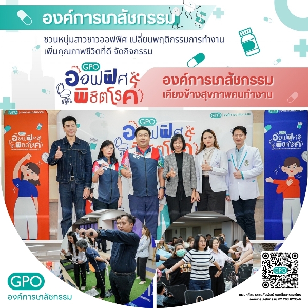 “กิจกรรม GPO ออฟฟิศพิชิตโรค : องค์การเภสัชกรรมเคียงข้างสุขภาพคนทำงาน เป็นกิจกรรมที่ดีมีประโยชน์หลายด้าน ทั้งต่อสุขภาพพนักงานในการช่วยลดปัญหาออฟฟิศซินโดรม เช่น อาการปวดเมื่อยจากการนั่งทำงานนานๆ ช่วยให้ห่างไกลจากโรคต่างๆ ลดความเครียด วิตกกังวล และภาวะหมดไฟ เพิ่มความรู้ด้านสุขภาพ ในการดูแลตนเอง ทั้งการออกกำลังกาย การรับประทานอาหารที่มีประโยชน์ และการจัดการอารมณ์ กระตุ้นให้มีกำลังใจในการดูแลสุขภาพและสร้างพฤติกรรมที่ดีอย่างต่อเนื่อง ลดปัญหาการลาป่วยและการลาออก สามารถทำงานได้อย่างมีความสุขและมีประสิทธิภาพมากขึ้น อีกทั้งยังสร้างวัฒนธรรมองค์กรที่ดี รวมทั้งลดค่าใช้จ่ายด้านการรักษาพยาบาลในระยะยาวต่อไปได้” ผู้อำนวยการฝ่ายการตลาด กล่าว
