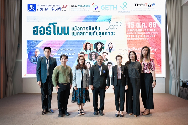 วันพุธที่ 15 ตุลาคม 2568 เวลา 08.00 – 13.00 น. สำนักงานคณะกรรมการสุขภาพแห่งชาติ (สช.) ร่วมกับนักศึกษาสถาบันการสร้างชาติ หลักสูตรผู้นำการประกอบการ wellness รุ่นที่ 8 จัดเวทีสนทนานโยบายสาธารณะ (Policy Dialogue) ภายใต้หัวข้อ “ฮอร์โมนเพื่อการยืนยันเพศสภาพกับสุขภาวะ” เพื่อส่งเสริมความเข้าใจด้านสุขภาพของผู้มีความหลากหลายทางเพศ โดยเฉพาะหญิงข้ามเพศที่ใช้ฮอร์โมนเพื่อการยืนยันเพศสภาพ โดยผู้ที่อยู่ในวงการการดูแลคนข้ามเพศ คุณณชเล บุญญาภิสมภาร ประธานคณะกรรมการขับเคลื่อนนโยบายสุขภาวะคนข้ามเพศ และรองประธานมูลนิธิเพื่อนกะเทยเพื่อสิทธิ มนุษยชน อาจารย์แพทย์จากคณะแพทย์ศาสตร์ จุฬาลงกรณ์มหาวิทยาลัย และมหาวิทยาลัยสงขลานครินทร์ กรมการแพทย์ สำนักงานหลักประกันสุขภาพแห่งชาติ และ หน่วยวิจัยเพื่อขับเคลื่อนนโยบายสุขภาพ คณะแพทยศาสตร์ ศิริราชพยาบาล