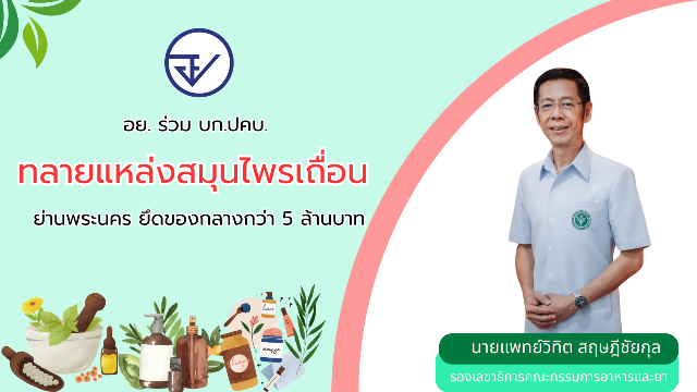 เมื่อวันที่ 14 ตุลาคม 2568 สำนักงานคณะกรรมการอาหารและยา (อย.) สนธิกำลังร่วมกับเจ้าหน้าที่ตำรวจ กองกำกับการ 4 กองบังคับการปราบปรามการกระทำความผิดเกี่ยวกับการคุ้มครองผู้บริโภค (กก.4 บก.ปคบ.) เข้าปฏิบัติการตรวจค้นและทลายแหล่งจำหน่ายผลิตภัณฑ์สมุนไพรผิดกฎหมายในพื้นที่เขตพระนคร กรุงเทพมหานคร