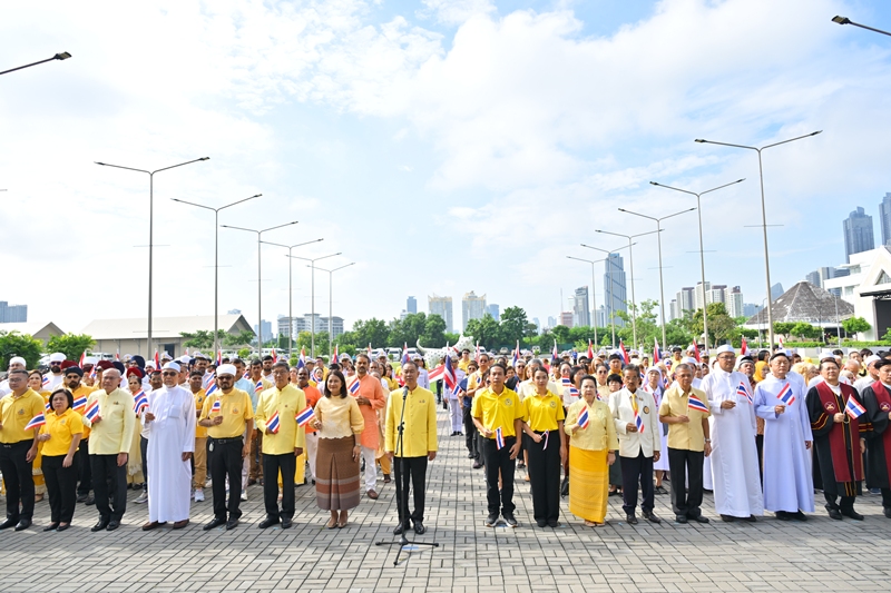 วันพฤหัสบดีที่ 16 ตุลาคม 2568 เวลา 07.00 น. กรมการศาสนา กระทรวงวัฒนธรรม ร่วมกับองค์การทางศาสนา 5 ศาสนา และเครือข่ายสถานศึกษา จัดกิจกรรมรณรงค์ส่งเสริมคุณธรรมความกตัญญู “รวมใจศาสนิกชน เชิดชูชาติไทย” โดยมีนายชัยพล สุขเอี่ยม อธิบดีกรมการศาสนา ผู้บริหารกระทรวงวัฒนธรรม ข้าราชการ เจ้าหน้าที่กรมการศาสนา และศาสนิกชนจากองค์การทางศาสนา 5 ศาสนา รวมทั้งเยาวชนจากสถานศึกษาเครือข่ายเข้าร่วมกว่า 400 คน ณ ลานวัฒนธรรมสร้างสุข กระทรวงวัฒนธรรม
