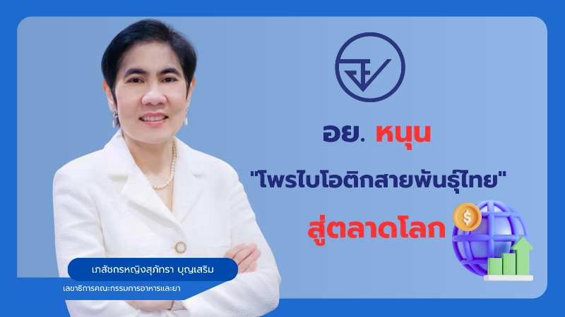 เภสัชกรหญิงสุภัทรา บุญเสริม เลขาธิการคณะกรรมการอาหารและยา เปิดเผยว่า กระแสรักสุขภาพเชิงป้องกันส่งผลให้ตลาดโพรไบโอติกในประเทศไทยกำลังเติบโตอย่างรวดเร็ว โดยในปี 2568 มีมูลค่าประมาณ 8,600 ล้านบาท และคาดว่าจะขยายตัวไปถึง 12,700 ล้านบาท ภายในปี 2573 ด้วยอัตราการเติบโตเฉลี่ยปีละประมาณ 8% จึงตลาดที่น่าจับตามองของผู้ประกอบการทั้งในและต่างประเทศ แต่ในปัจจุบันจุลินทรีย์โพรไบโอติกที่ใช้ในอาหารส่วนใหญ่เป็นสายพันธุ์นำเข้าจากต่างประเทศ ดังนั้น เพื่อสนับสนุนการพัฒนาจุลินทรีย์โพรไบโอติกสายพันธุ์ไทยให้มีการนำไปใช้ในอาหารอย่างแพร่หลายมากขึ้น สำนักงานคณะกรรมการอาหารและยา (อย.) ได้ร่วมกับศูนย์พันธุวิศวกรรมและเทคโนโลยีชีวภาพแห่งชาติ (ไบโอเทค) ภายใต้โครงการ “การประเมินความปลอดภัยและคุณสมบัติของจุลินทรีย์สายพันธุ์ไทย” เพื่อผลักดันให้ “โพรไบโอติกสายพันธุ์ไทย” เป็นสินค้าดาวรุ่งที่มีศักยภาพแข่งขันในตลาดโลก โดยมีเป้าหมายคือ ลดเวลา: เพิ่มรายการโพรไบโอติกสายพันธุ์ไทยที่ผ่านการรับรองแล้ว เพื่อให้ผู้ประกอบการสามารถนำไปผลิตอาหารได้อย่างรวดเร็ว และเพิ่มความมั่นใจ: ทวนสอบสายพันธุ์จุลินทรีย์ในตลาดและขอข้อมูลทางเทคนิคจากผู้ประกอบการ เพื่อเป็นข้อมูลประกอบการลดขั้นตอนการอนุญาตผลิตภัณฑ์ที่มีโพรไบโอติกเป็นส่วนประกอบในอนาคต