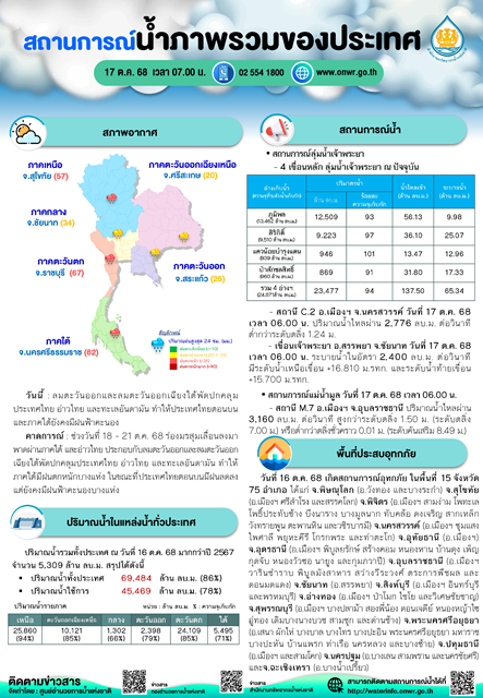 สถานการณ์น้ำภาพรวมของประเทศ วันที่ 17 ต.ค. 68 เวลา 7.00 น.