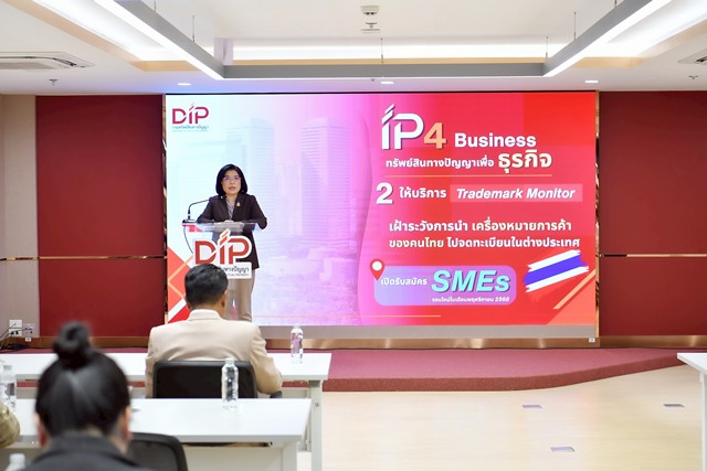 มิติที่สอง “ทรัพย์สินทางปัญญาเพื่อธุรกิจ” (IP for Business) เน้นการอำนวยความสะดวกการจดทะเบียนคุ้มครองทรัพย์สินทางปัญญาและการใช้ประโยชน์ทรัพย์สินทางปัญญาในเชิงพาณิชย์ ให้กับนักธุรกิจ ดังนี้ (1) พัฒนางานบริการจดทะเบียนทรัพย์สินทางปัญญาให้ง่าย สะดวก รวดเร็ว โดยนำเทคโนโลยีสมัยใหม่ เช่น AI มาช่วยพัฒนาระบบตรวจสอบสิทธิบัตรและเครื่องหมายการค้า และนำระบบ Fast Track มาช่วยลดระยะเวลาการจดทะเบียนสิทธิบัตร เครื่องหมายการค้า และอนุสิทธิบัตร โดยเฉพาะในอุตสาหกรรมเป้าหมาย ซึ่งที่ผ่านมาได้ดำเนินการเปิด Fast Track หรือช่องทางพิเศษที่สามารถจดทะเบียนสิทธิบัตรได้รวดเร็วขึ้น โดยในกรณีสิทธิบัตรการประดิษฐ์จากที่เคยใช้เวลาประมาณ 38.5 เดือน นับจากวันยื่นขอให้ตรวจสอบการประดิษฐ์ เหลือไม่เกิน 12 เดือน และอนุสิทธิบัตรจาก 12 เดือน เหลือ 6 เดือน ใน 3 นวัตกรรมแห่งอนาคต คือ การแพทย์และสาธารณสุข อาหารแห่งอนาคต และรักษ์สิ่งแวดล้อม สำหรับในปี 2569 มีแผนจะเพิ่ม Fast Track ในอุตสาหกรรมชีวภาพ อุตสาหกรรมดิจิทัลและปัญญาประดิษฐ์ เซมิคอนดักเตอร์และอิเล็กทรอนิกส์ขั้นสูง เป็นต้น นอกจากนี้ ในส่วนของการจดทะเบียนสิทธิบัตรการออกแบบผลิตภัณฑ์ ซึ่งปัจจุบันมีช่องทาง Fast Track ในสาขานวัตกรรมรักษ์สิ่งแวดล้อมได้ลดระยะเวลาการจดทะเบียนจาก 10 เดือน นับจากวันสิ้นสุดระยะเวลาที่จะคัดค้าน เหลือ 3 เดือน และจะขยายไปยังสาขาอื่นเพิ่มเติม เช่น ชิ้นส่วนยานยนต์ วัสดุก่อสร้าง ในส่วนของการจดทะเบียนเครื่องหมายการค้าจะเพิ่มรายการเครื่องหมายการค้าในระบบ Fast Track จากปัจจุบันที่การจดทะเบียนเครื่องหมายการค้าจะมีระยะเวลาเฉลี่ย 10.5 เดือน และมี Fast Track ใช้เวลาเหลือ 3 – 6 เดือน ในกรณีมีเครื่องหมายการค้าที่ต้องใช้ประกอบการยื่นจดทะเบียนกับหน่วยราชการ เช่น สำนักงานคณะกรรมการอาหารและยา (อย.) และ กรมวิชาการเกษตร หรือกรณีมีแผนจะส่งออก หรือใช้ประโยชน์ทางธุรกิจ เป็นต้น โดยในปี 2569 จะเพิ่มช่องทาง Fast Track จดเครื่องหมายการค้าให้กับสินค้าที่จะขายออนไลน์ผ่านแพลตฟอร์มดิจิทัล (2) เดินหน้าบริการ Trademark Monitor หรือการเฝ้าระวังการนำเครื่องหมายการค้าของคนไทยไปจดทะเบียนในต่างประเทศอย่างต่อเนื่อง โดยจะเปิดรับสมัครผู้ประกอบการ SMEs เข้าร่วมโครงการรอบใหม่ในเดือนพฤศจิกายน 2568 (3) ติดอาวุธผู้ประกอบการด้วยการเร่งสร้างความรู้ความเข้าใจเรื่องประโยชน์และการบริหารจัดการทรัพย์สินทางปัญญา โดยการให้คำปรึกษาด้านทรัพย์สินทางปัญญาแบบครบวงจร ทั้งผ่านศูนย์ IPAC (IP Advisory Center) ของกรม และร่วมกับหน่วยงานพันธมิตรให้คำแนะนำตั้งแต่การจดทะเบียนคุ้มครองทรัพ
