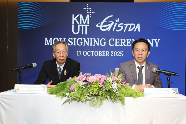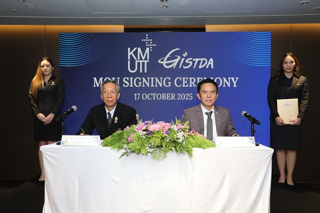 วันที่ 17 ตุลาคม 2568 กระทรวงการอุดมศึกษา วิทยาศาสตร์ วิจัยและนวัตกรรม (อว.) โดย สำนักงานพัฒนาเทคโนโลยีอวกาศและภูมิสารสนเทศ (องค์การมหาชน) หรือ GISTDA และ มหาวิทยาลัยเทคโนโลยีพระจอมเกล้าธนบุรี (มจธ.) ร่วมลงนามใน บันทึกความเข้าใจ (MOU) เพื่อยกระดับศักยภาพของประเทศไทยด้าน เทคโนโลยีอวกาศและภูมิสารสนเทศ ทั้งในมิติของการศึกษา การวิจัย และการพัฒนานวัตกรรม โดยมีเป้าหมายเพื่อสร้างระบบนิเวศของอุตสาหกรรมอวกาศไทยให้เข้มแข็งและเติบโตอย่างยั่งยืน โดยพิธีลงนามจัดขึ้นภายในงาน Thailand Space Expo 2025 ณ ศูนย์การค้าไอคอนสยาม โดยมี ดร.ปกรณ์ อาภาพันธุ์ ผู้อำนวยการ GISTDA และ รองศาสตราจารย์ ดร.สุวิทย์ แซ่เตีย อธิการบดี มจธ. ร่วมเป็นผู้ลงนาม