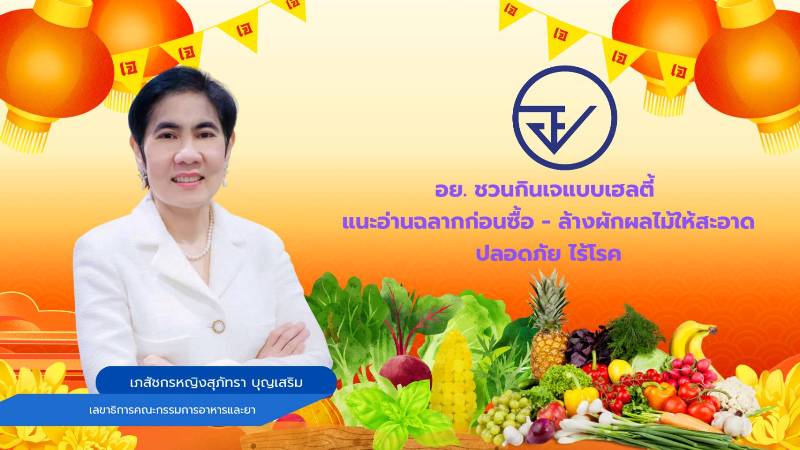 เภสัชกรหญิงสุภัทรา บุญเสริม เลขาธิการคณะกรรมการอาหารและยา เปิดเผยว่า เทศกาลกินเจในปีนี้อยู่ในช่วงระหว่างวันที่ 21 – 29 ตุลาคม 2568 สำนักงานคณะกรรมการอาหารและยา (อย.) ขอเชิญชวนผู้บริโภคหันมารับประทานอาหารเจแบบเฮลตี้ อิ่มบุญ อิ่มท้อง สุขภาพดี ปลอดภัย แนะผู้บริโภคอ่านข้อมูลบนฉลากให้ละเอียด กรณีเป็นอาหารเจสำเร็จรูป ควรเลือกซื้อผลิตภัณฑ์ที่มีฉลากภาษาไทยแสดง ชื่ออาหาร เลข อย. ส่วนประกอบที่สำคัญ และวันเดือนและปีที่ควรบริโภคก่อนหรือหมดอายุ ชื่อและที่ตั้งของสถานที่ผลิต หรือผู้นําเข้า น้ำหนักสุทธิ เป็นต้น นอกจากนี้ ควรเลือกซื้อผักและผลไม้ที่มีสีสันตามธรรมชาติ ไม่มีคราบขาวของสารเคมี หรือมีกลิ่นที่ผิดปกติ มีรอยกัดแทะของหนอนหรือแมลงอยู่บ้าง และเลือกรับประทานผักและผลไม้ตามฤดูกาล เนื่องจากผักและผลไม้ที่ปลูกได้ตามฤดูกาลจะมีโอกาสเจริญเติบโตได้ดีกว่านอกฤดูกาล ซึ่งช่วยลดการปนเปื้อนของสารเคมีและปุ๋ย ที่สำคัญควรล้างผักผลไม้ก่อนรับประทาน หากล้างผักผลไม้จำนวนน้อยให้แช่น้ำธรรมดาประมาณ 15 นาที แล้วเขย่าหรือลูบเบาๆ จากนั้นล้างผ่านน้ำสะอาดไหลซ้ำไม่น้อยกว่า 30 วินาที หรือแช่ในน้ำผสมเบกกิ้งโซดา (โซเดียมไบคาร์บอเนต 1 ช้อนชา ต่อน้ำ 4 ลิตร) หรือแช่ในน้ำผสมเกลือ (เกลือ 2 ช้อนโต๊ะ ต่อน้ำ 4 ลิตร) แช่ให้ท่วมผักและผลไม้นาน 15 นาที แล้วล้างน้ำสะอาด
