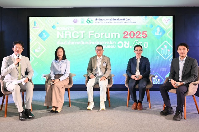 วันที่ 20 ตุลาคม 2568 สำนักงานการวิจัยแห่งชาติ(วช.) กระทรวงการอุดมศึกษา วิทยาศาสตร์ วิจัยและนวัตกรรม จัดแถลงข่าวการจัดงาน “NRCT Forum 2025” เนื่องในโอกาสวันคล้ายวันสถาปนา วช. ครบรอบ 66 ปี โดย ดร.วิภารัตน์ ดีอ่อง ผู้อำนวยการสำนักงานการวิจัยแห่งชาติ เป็นประธานในพิธี ณ ศูนย์ข้อมูลสารสนเทศกลางด้านวิทยาศาสตร์ วิจัยและนวัตกรรมของประเทศ วช.