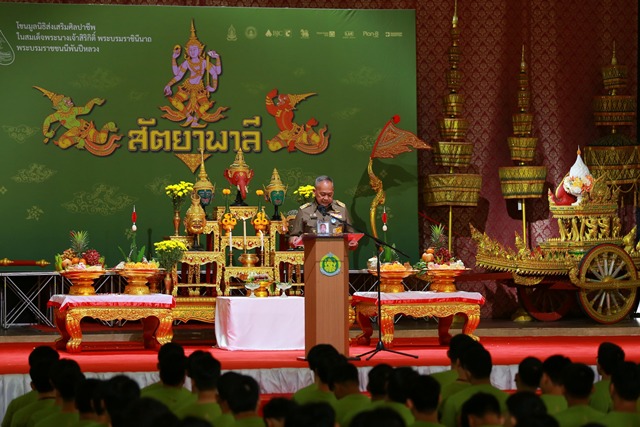 วันที่ 21 ต.ค. 68 เวลา 09.00 น. พลอากาศเอก สถิตย์พงษ์ สุขวิมล ราชเลขานุการในพระองค์พระบาทสมเด็จพระเจ้าอยู่หัว รองประธานกรรมการและเลขาธิการมูลนิธิส่งเสริมศิลปาชีพ ในสมเด็จพระนางเจ้าสิริกิติ์ พระบรมราชินีนาถ พระบรมราชชนนีพันปีหลวง เป็นประธานในพิธีคำนับครู โขนมูลนิธิส่งเสริมศิลปาชีพฯ ตอน “สัตยาพาลี” และมอบทุนพระราชทานมูลนิธิส่งเสริมศิลปาชีพฯ ประจำปี 2568 ให้แก่นักแสดงที่ได้รับการคัดเลือกจากทั่วภูมิภาค จำนวน 15 ทุน ณ อาคารศึกษาทั่วไป วิทยาลัยนาฏศิลป สถาบันบัณฑิตพัฒนศิลป์ ตำบลศาลายา อำเภอพุทธมณฑล จังหวัดนครปฐม