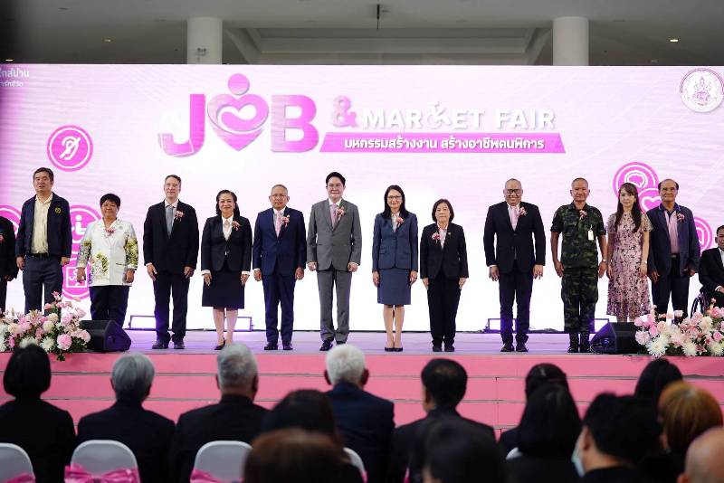 วันที่ 20 ตุลาคม 2568 นายอัครา พรหมเผ่า รัฐมนตรีว่าการกระทรวงการพัฒนาสังคมและความมั่นคงของมนุษย์ (รมว.พม.) เป็นประธานเปิดโครงการ Job and Market Fair : “มหกรรมสร้างงาน สร้างอาชีพคนพิการ” เพื่อส่งเสริมศักยภาพและสร้างโอกาสให้คนพิการมีอาชีพที่มั่นคงและยั่งยืน ด้วยการมุ่งเน้นการพัฒนาทักษะอาชีพและทักษะดิจิทัล ด้วยการเปิดพื้นที่จำหน่ายผลิตภัณฑ์สินค้า และบริการ เชื่อมโยงกับสถานประกอบการเพื่อการจ้างงานคนพิการ โดยนางสาวสนธยา บุณยภูษิต อธิบดีกรมส่งเสริมและพัฒนาคุณภาพชีวิตคนพิการ (อธิบดี พก.) กล่าวรายงาน ซึ่งมี นายกันตพงศ์ รังษีสว่าง ปลัดกระทรวงการพัฒนาสังคมและความมั่นคงของมนุษย์ (ปลัด พม.) คณะผู้บริหารกระทรวง พม. คนพิการพร้อมครอบครัวคนพิการ และผู้ดูแลคนพิการ อาสาสมัคร เครือข่ายคนพิการทั้งภาครัฐ ธุรกิจเอกชน และประชาสังคม รวมถึงสื่อมวลชนเข้าร่วมงาน รวมทั้งสิ้น จำนวน 5,000 คน ณ อาคารรัฐประศาสนภักดี (อาคาร B) ศูนย์ราชการเฉลิมพระเกียรติ 80 พรรษา กรุงเทพมหานคร