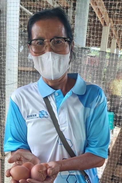 คุณดอกไม้ เล่าเสริมว่า หลังที่ได้เข้าร่วมโครงการนี้ ชีวิตความเป็นอยู่ดีขึ้น ได้ไข่ไก่มาหมุนเวียนในครอบครัว โดยไม่ต้องเสียเงินซื้อไข่แล้ว และยังมีรายได้เสริมจากการขายไข่ไก่อีกด้วย นอกจากนี้ยังได้ต่อยอดไปปลูกผักกินเองในครัวเรือน ทำให้ลดค่าใช้จ่ายลงไปได้อีก ที่สำคัญทำให้สุขภาพจิตดีขึ้น ไม่เครียด มีงานให้ทำทุกวัน ชีวิตมีความหมายมากขึ้นกว่าเดิม