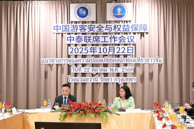 เมื่อวันที่ 22 ตุลาคม 2568 กระทรวงการท่องเที่ยวและกีฬา โดยนางสาววนิดา พันธ์สอาด รองปลัดกระทรวงฯ และ สถานเอกอัครราชทูตสาธารณรัฐประชาชนจีนประจำราชอาณาจักรไทย โดยนาย อู๋ เจี้ยน อัครราชทูตที่ปรึกษาและกงสุลใหญ่ ได้ร่วมเป็นประธานการประชุมหารือแนวทางการดูแลความปลอดภัยนักท่องเที่ยวจีนในช่วงฤดูกาลท่องเที่ยว (High Season) ณ โรงแรมอวานี รัชดา กรุงเทพฯ