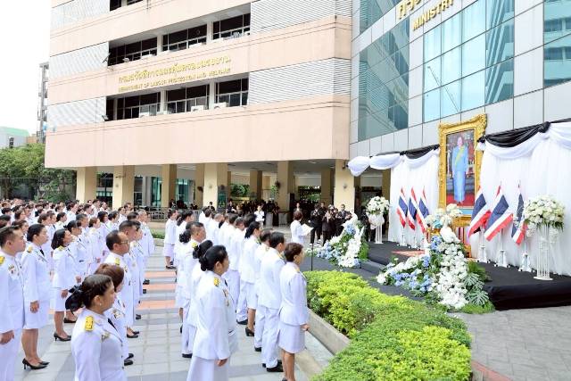 นางสาวตรีนุช เทียนทอง รัฐมนตรีว่าการกระทรวงแรงงาน เปิดเผยว่า เพื่อถวายความอาลัยและถวายพระเกียรติอย่างสูงสุด กระทรวงแรงงาน ได้ให้หน่วยงานในสังกัดทั้งส่วนกลางและส่วนภูมิภาค ลดธงลงครึ่งเสา เป็นเวลา 30 วัน ตั้งแต่วันที่ 25 ตุลาคม ที่ผ่านมา ไปจนถึงวันที่ 23 พฤศจิกายน 2568 และเชิญชวนให้บุคลากร ร่วมแต่งกายไว้ทุกข์เป็นระยะเวลา 1 ปี ตั้งแต่วันที่ 25 ตุลาคม ไปจนถึงวันที่ 24 ตุลาคม 2569 โดยพร้อมเพรียงกัน