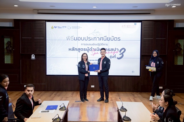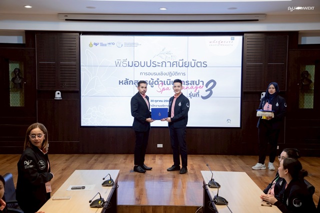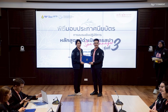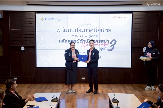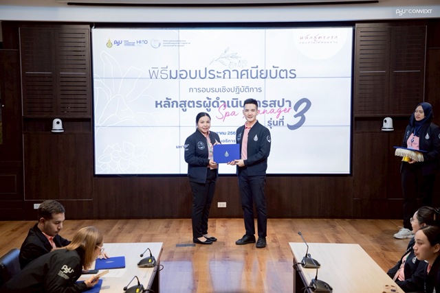 คณะมนุษยศาสตร์และสังคมศาสตร์ มหาวิทยาลัยสงขลานครินทร์ วิทยาเขตปัตตานี จัดพิธีมอบประกาศนียบัตรและปิดการอบรม “หลักสูตรผู้ดำเนินการสปาเพื่อสุขภาพ 100 ชั่วโมง รุ่นที่ 3” เมื่อวันที่ 30 ตุลาคม 2568 ณ ห้องประชุม 210 สำนักงานอธิการบดี มหาวิทยาลัยสงขลานครินทร์ วิทยาเขตหาดใหญ่