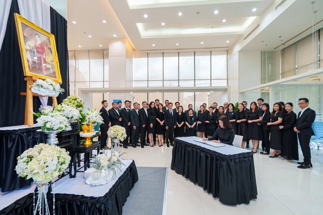บมจ.ไทยสมุทรประกันชีวิต รักคือพลังของชีวิต โดยคุณนุสรา (อัสสกุล) บัญญัติปิยพจน์ ประธานเจ้าหน้าที่บริหารและกรรมการผู้จัดการ (CEO) พร้อมด้วยคณะกรรมการ ผู้บริหาร และพนักงาน จัดพิธีน้อมถวายความอาลัยเบื้องหน้าพระฉายาลักษณ์ สมเด็จพระนางเจ้าสิริกิติ์ พระบรมราชินีนาถ พระบรมราชชนนีพันปีหลวง ณ อาคารโอเชี่ยนทาวเวอร์ 1 ในวันศุกร์ที่ 31 ตุลาคม 2568