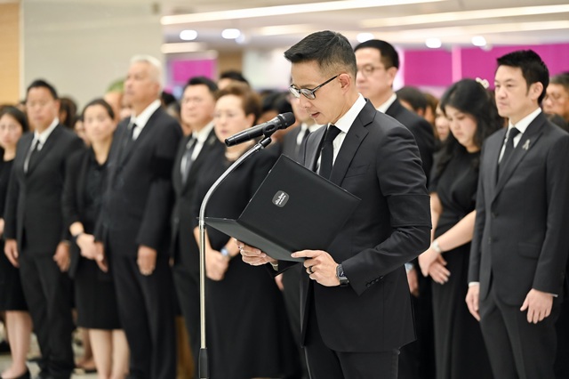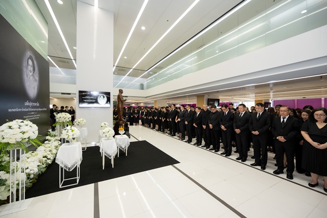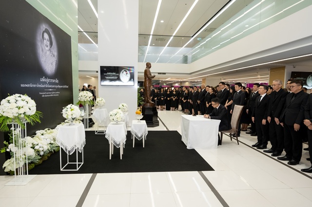 ในโอกาสนี้ นายสาระ ล่ำซำ ประธานเจ้าหน้าที่บริหาร ได้กล่าวถวายความอาลัย พร้อมกันนี้ คณะผู้บริหารและพนักงาน ได้พร้อมใจกันยืนสงบนิ่ง และลงนามในสมุดถวายความอาลัย เพื่อแสดงความจงรักภักดี และน้อมรำลึกถึงพระมหากรุณาธิคุณที่ทรงมีต่อพสกนิกรชาวไทย ตลอดระยะเวลาที่ทรงปฏิบัติพระราชกรณียกิจน้อยใหญ่นานัปการ ตามที่ทรงตั้งพระราชปณิธานอย่างแน่วแน่ ในการบำเพ็ญ พระราชกรณียกิจมาตลอดพระชนม์ชีพ เพื่อบำบัดทุกข์บำรุงสุข แก่พสกนิกรชาวไทยในทุกหนแห่ง อีกทั้งยังทรงส่งเสริมงานด้านศิลปวัฒนธรรม หัตถศิลป์ไทย ตลอดจนการอนุรักษ์ธรรมชาติและสิ่งแวดล้อมรวมทั้งการพัฒนาคุณภาพชีวิตของประชาชนในถิ่นทุรกันดาร ซึ่งสะท้อนถึงพระเมตตาของสมเด็จพระนางเจ้าสิริกิติ์ พระบรมราชินีนาถ พระบรมราชชนนีพันปีหลวง สมดังพระราชสมัญญา “พระแม่ของแผ่นดิน”