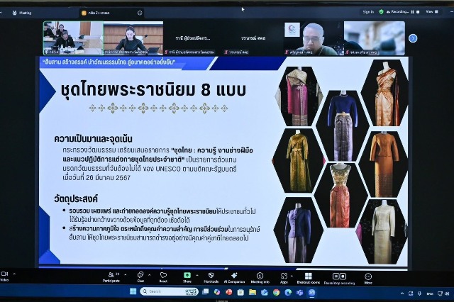 นางสาวซาบีดา กล่าวว่า สำหรับการส่งเสริมชุดไทยพระราชนิยมและผ้าไทย กระทรวงวัฒนธรรมได้แต่งตั้งคณะที่ปรึกษาโครงการชุดไทยพระราชนิยมและผ้าไทย ประกอบด้วยผู้ทรงคุณวุฒิที่มีความรู้ความเชี่ยวชาญทางด้านชุดไทยพระราชนิยมและผ้าไทย รวมทั้งได้แต่งตั้งคณะทำงานขับเคลื่อนงานส่งเสริมชุดไทยพระราชนิยมและผ้าไทย ซึ่งคณะทำงานฯ ได้มีการกำหนดแผนการดำเนินงาน โดยมีกิจกรรมสำคัญ อาทิ การจัดทำสื่อองค์ความรู้ชุดไทยพระราชนิยม , การประชุมเชิงปฏิบัติการ (workshop) เพื่อถ่ายทอดทักษะและองค์ความรู้ในการตัดเย็บและการตกแต่งประดับลวดลายชุดไทยพระราชนิยม ซึ่งจะจัดในช่วงเดือนพฤศจิกายน – ธันวาคม 2568 , การเสวนาเผยแพร่และถ่ายทอดองค์ความรู้ชุดไทยพระราชนิยมให้แก่นิสิต นักศึกษา เยาวชน ช่างทอผ้า นักออกแบบ ผู้ประกอบการผ้าไทย ผู้ให้เช่าชุดไทย และประชาชนทั่วไป ในช่วงเดือนมกราคม 2569 , นิทรรศการชุดไทยพระราชนิยมเฉลิมพระเกียรติสมเด็จพระนางเจ้าสิริกิติ์พระบรมราชินีนาถ ในช่วงเดือนมกราคม 2569 , การออกแบบและตัดเย็บชุดไทยพระราชนิยม ในช่วงเดือนพฤศจิกายน 2568 – มกราคม 2569 และการเผยแพร่ประชาสัมพันธ์ชุดไทยพระราชนิยมในต่างประเทศ (roadshow) ในช่วงเดือนธันวาคม 2568 – เมษายน 2569
