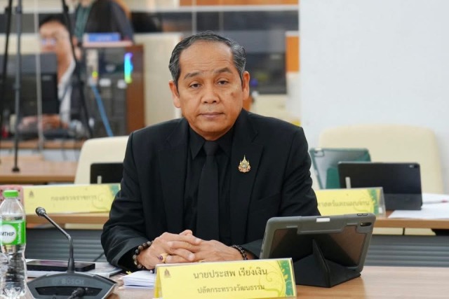 เมื่อเร็วๆ นี้ นางสาวซาบีดา ไทยเศรษฐ์ รัฐมนตรีว่าการกระทรวงวัฒนธรรม เป็นประธานการประชุมติดตามการดำเนินงานตามนโยบายรัฐมนตรีว่าการกระทรวงวัฒนธรรม โดยมี นายมานะ สิมมา ประธานคณะทำงานรัฐมนตรีว่าการกระทรวงวัฒนธรรม นายประสพ เรียงเงิน ปลัดกระทรวงวัฒนธรรม นางโชติกา อัครกิจโสภากุล รองปลัดกระทรวงวัฒนธรรม นางยุถิกา อิศรางกูร ณ อยุธยา อธิบดีกรมส่งเสริมวัฒนธรรม นายพนมบุตร จันทรโชติ อธิบดีกรมศิลปากร นายชัยพล สุขเอี่ยม อธิบดีกรมการศาสนา นางเกษร กำเหนิดเพ็ชร ผู้อำนวยการสำนักงานศิลปวัฒนธรรมร่วมสมัย คณะที่ปรึกษาโครงการชุดไทยพระราชนิยมและผ้าไทย คณะกรรมการอำนวยการขับเคลื่อนและติดตามการดำเนินงานตามนโยบายรัฐมนตรีว่าการกระทรวงวัฒนธรรม ประจำปีงบประมาณ พ.ศ. 2569 คณะทำงานขับเคลื่อนการดำเนินงานตามนโยบาย วธ. ผู้บริหารระดับสูงของ วธ. องค์การมหาชนในสังกัด และเจ้าหน้าที่ที่เกี่ยวข้อง เข้าร่วมประชุม พร้อมการประชุมออนไลน์ ผ่านระบบ Zoom Meeting ณ ศูนย์ประชุมกระทรวงวัฒนธรรม ชั้น 8 อาคารวัฒนธรรมวิศิษฏ์