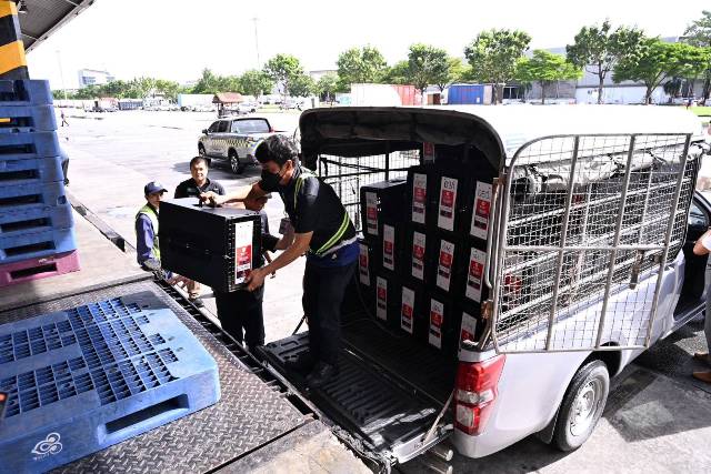 วันจันทร์ที่ 3 พฤศจิกายน 2568 นายสัตวแพทย์สมชวน รัตนมังคลานนท์ อธิบดีกรมปศุสัตว์ ติดตามความก้าวหน้าการส่งออกไก่พื้นเมืองมีชีวิต (Ayam Bangkok) ไปยังประเทศอินโดนีเซีย ณ ด่านกักสัตว์ท่าอากาศยานสุวรรณภูมิ สนามบินสุวรรณภูมิ
