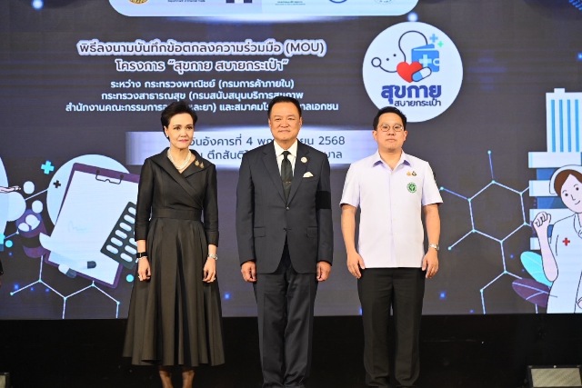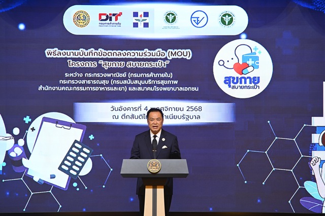 วันที่ 4 พฤศจิกายน 2568 กระทรวงพาณิชย์ (กรมการค้าภายใน) กระทรวงสาธารณสุข (กรมสนับสนุนบริการสุขภาพ และสำนักงานคณะกรรมการอาหารและยา) และสมาคมโรงพยาบาลเอกชน จับมือร่วมลงนามข้อตกลงความร่วมมือ (MOU) โครงการ “สุขกาย สบายกระเป๋า” โดยมีนายกรัฐมนตรี (นายอนุทิน ชาญวีรกูล) เป็นประธานแถลงข่าว พร้อมด้วยรัฐมนตรีว่าการกระทรวงพาณิชย์ (นางศุภจี สุธรรมพันธุ์) และรัฐมนตรีว่าการกระทรวงสาธารณสุข (นายพัฒนา พร้อมพัฒน์) ร่วมเป็นสักขีพยาน โดย มีเป้าหมายให้โรงพยาบาลเอกชนเปิดเผยค่ายา และเพิ่มทางเลือกให้ประชาชนสามารถเลือกซื้อยา ภายนอกโรงพยาบาลได้ ซึ่งจะทำให้ประชาชนมีทางเลือกในการใช้บริการโรงพยาบาลเอกชนเพิ่มมากขึ้น