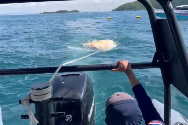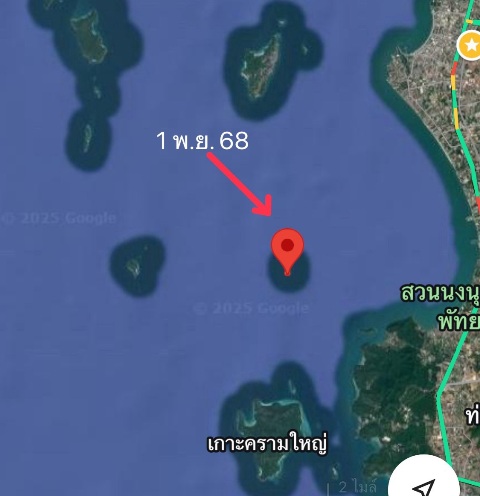 วันที่ 4 พฤศจิกายน 2568 ดร.ปิ่นสักก์ สุรัสวดี ได้รับรายงานจากสำนักงานทรัพยากรทางทะเลและชายฝั่งที่ 2 ว่า ทีมค้นหาโดยเรือปฏิบัติการกู้ภัยทางทะเล 242 ได้พบซากวาฬไม่ทราบชนิด บริเวณทะเลหน้าหาดตาแหวน ทิศตะวันตกเฉียงเหนือ ของเกาะล้าน อ.บางละมุง จ.ชลบุรี มีสภาพเน่าเปื่อย คาดว่าเสียชีวิตมาแล้ว 1-2 สัปดาห์ และจากข้อมูลเบื้องต้น ในวันที่ 1 พฤศจิกายน 2568 ได้รับแจ้งจากเครือข่ายฯ พบซากวาฬตัวดังกล่าว บริเวณ ด้านทิศตะวันตก ติดกับเกาะรางเกวียน อ.สัตหีบ จ.ชลบุรี โดยพบอวนติดบริเวณลำตัวของวาฬ ลักษณะเป็นอวนตาถี่ สีเขียว มีสายมานร้อยอยู่กับเนื้ออวน จนทีมค้นหาได้ติดตามซากวาฬ จนพบอีกครั้งในวันที่ 4 พฤศจิกายน 2568 จึงได้ทำการลากซากวาฬ ไปในที่เหมาะสมในการเก็บกู้ พร้อมแจ้งศูนย์วิจัยทรัพยากรทางทะเลและชายฝั่งอ่าวไทยฝั่งตะวันออกเพื่อทำการเก็บตัวอย่าง และหาสาเหตุการตาย แต่เนื่องจากสภาพซากเน่าเปื่อยมาก เหลือเพียงก้อนไขมันและผิวหนังส่วนท้อง ไม่สามารถระบุร่องรอยของอวนและรอยโรคได้ จึงได้ประสานไปยังเจ้าหน้าที่ฝ่ายป้องกันภัยพิบัติทางทะเล เมืองพัทยา (sea rescue pattaya city) ดำเนินการลากซากวาฬที่เหลืออยู่ ออกไปทิ้งกลางทะเลเปิด โดยคาดว่าซากของวาฬจะจมลงสู่ทะเลต่อไป