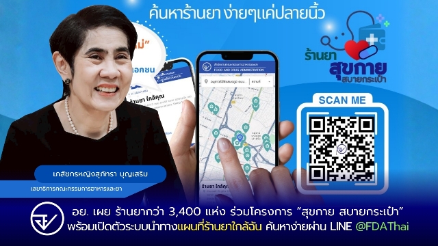 อย. เผย ร้านยากว่า 3,400 แห่ง ร่วมโครงการ “สุขกาย สบายกระเป๋า” พร้อมเปิดตัวระบบนำทาง “แผนที่ร้านยาใกล้ฉัน” ค้นหาง่าย ผ่าน LINE @FDAThai