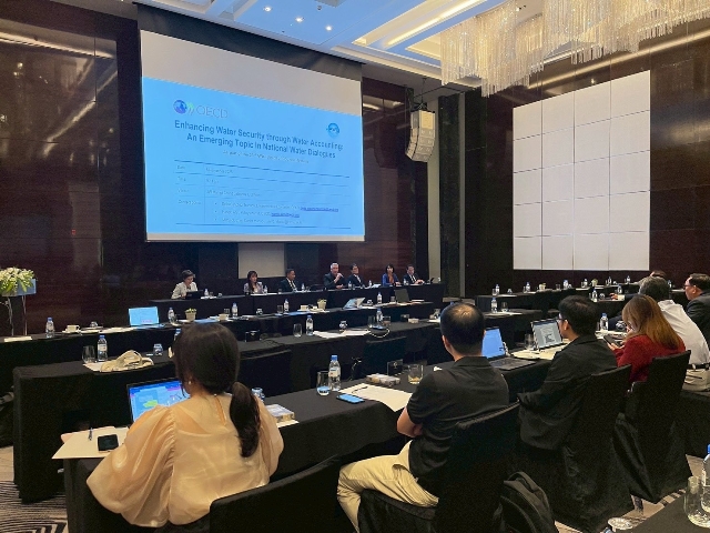 ในโอกาสนี้ OECD ได้จัดกิจกรรมคู่ขนาน (side event) ในห้วงการประชุมดังกล่าว ภายใต้หัวข้อ “การเพิ่มความมั่นคงด้านน้ำโดยการจัดทำบัญชีน้ำในประเทศไทย” (Enhancing Water Security through Water Accounting in Thailand) โดยมี นายเลิศพันธ์ สุขยิรัญ ผู้อำนวยการกองบริหารจัดการลุ่มน้ำ สทนช. ได้ร่วมเสวนาในหัวข้อดังกล่าว โดยเน้นย้ำถึงการผลักดันแนวคิดการจัดทำบัญชีน้ำในประเทศไทย ซึ่งจะเป็นเครื่องมือสำคัญในการวางแผนและตัดสินใจเชิงนโยบายด้านน้ำในระดับประเทศ เพื่อยกระดับการบริหารจัดการทรัพยากรน้ำของประเทศให้สอดคล้องกับแนวทางสากล