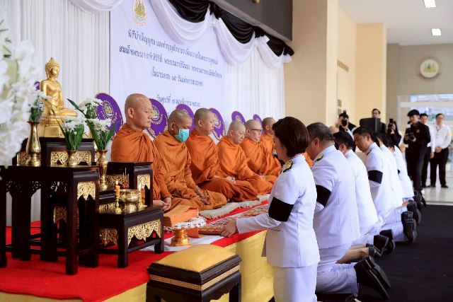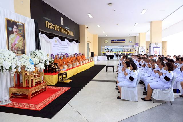 ภายหลังเสร็จสิ้นพิธีสงฆ์ นางสาวตรีนุช เทียนทอง รัฐมนตรีว่าการกระทรวงแรงงาน พร้อมด้วยผู้บริหารระดับสูง ข้าราชการ และเจ้าหน้าที่กระทรวงแรงงาน ร่วมตักบาตรข้าวสารอาหารแห้งถวายพระสงฆ์ จำนวน 10 รูป เพื่อถวายเป็นพระราชกุศลโดยพร้อมเพรียงกัน ซึ่งบรรยากาศเป็นไปด้วยความสงบ สำนึกในพระมหากรุณาธิคุณ และความจงรักภักดีอย่างล้นพ้น