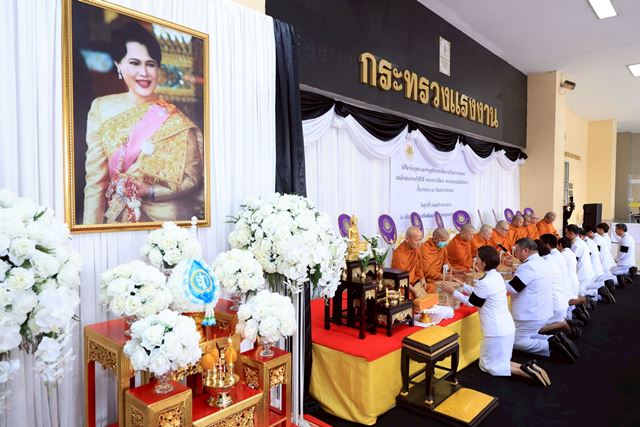 วันที่ 7 พฤศจิกายน 2568 เวลา 08.00 น. นางสาวตรีนุช เทียนทอง รัฐมนตรีว่าการกระทรวงแรงงาน เป็นประธานในพิธีบำเพ็ญกุศล และทำบุญตักบาตร เพื่อถวายเป็นพระราชกุศลแด่สมเด็จพระนางเจ้าสิริกิติ์ พระบรมราชินีนาถ พระบรมราชชนนีพันปีหลวง ในวาระครบ 15 วัน (ปัณรสมวาร) แห่งการสวรรคตเพื่อแสดงความอาลัยและน้อมรำลึกในพระมหากรุณาธิคุณอันหาที่สุดมิได้ โดยมี พันตำรวจโท วรรณพงษ์ คชรักษ์ ปลัดกระทรวงแรงงาน พร้อมด้วยผู้บริหารระดับสูง ข้าราชการ และเจ้าหน้าที่กระทรวงแรงงาน เข้าร่วมพิธีโดยพร้อมเพรียงกัน ณ บริเวณศูนย์ส่งเสริมพัฒนาการบุตรของบุคลากรกระทรวงแรงงาน และลานด้านหน้าศาลาพระพุทธสุทธิธรรมบพิตร