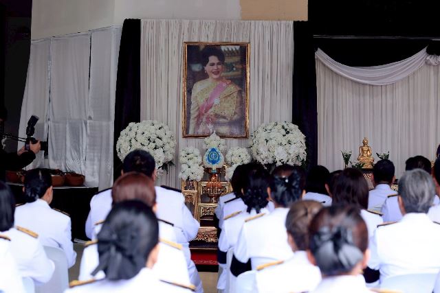 ทั้งนี้ ภายในพิธีมีการนิมนต์พระสงฆ์สวดพระพุทธมนต์และประกอบพิธีบำเพ็ญกุศล พร้อมทั้งจัดโต๊ะหมู่บูชา ประดิษฐานพระฉายาลักษณ์ สมเด็จพระนางเจ้าสิริกิติ์ พระบรมราชินีนาถ พระบรมราชชนนีพันปีหลวง เพื่อแสดงความจงรักภักดีและความอาลัยอย่างสมพระเกียรติ