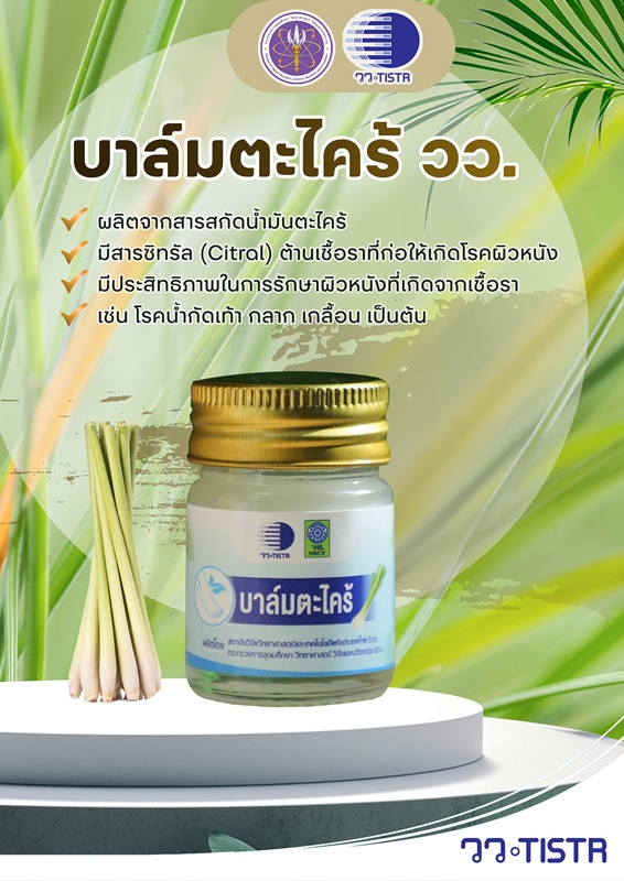 ผลิตภัณฑ์บาล์มตะไคร้ ได้รับการสนับสนุนทุนวิจัยจาก วช. มีประสิทธิภาพความปลอดภัยในการรักษาโรคน้ำกัดเท้า และสามารถรักษาโรคผิวหนังที่เกิดจากเชื้อราอื่นๆ ด้วย เช่น กลาก เกลื้อน