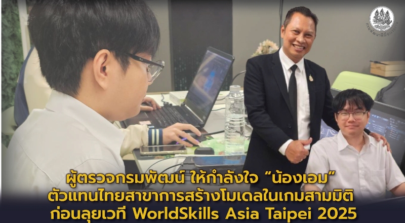 ผู้ตรวจกรมพัฒน์ ให้กำลังใจ “น้องเอม” ตัวแทนไทยสาขาการสร้างโมเดลในเกมสามมิติ ก่อนลุยเวที WorldSkills Asia Taipei 2025