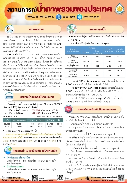• สถานการณ์ลุ่มน้ำเจ้าพระยา ณ วันที่ 10 พ.ย. 68 เวลา 06.00 น.