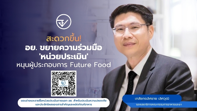 อย. สนับสนุนการขยายตัวของธุรกิจอาหารแห่งอนาคต โดยขยายความร่วมมือกับหน่วยงานวิชาการ เพื่อเพิ่มหน่วยประเมินในขอบข่ายต่าง ๆ ซึ่งเป็นการอำนวยความสะดวกแก่ผู้ประกอบการ และเพิ่มศักยภาพการแข่งขันในระดับสากล