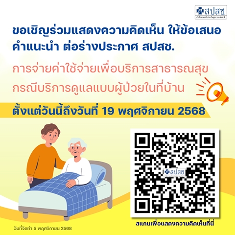 ขอเชิญร่วมแสดงความคิดเห็น ต่อร่างประกาศ สปสช. กรณีบริการดูแลแบบผู้ป่วยในที่บ้าน ตั้งแต่วันนี้ – 19 พ.ย.68