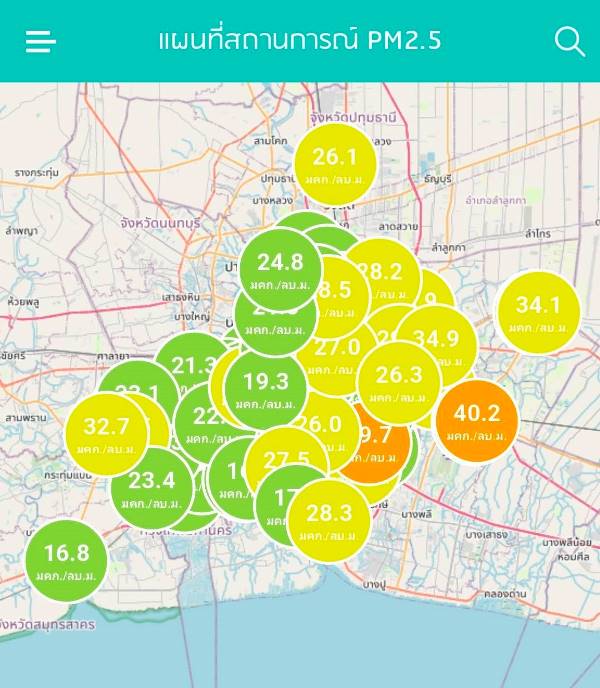 ศูนย์สื่อสารการแก้ไขปัญหามลพิษทางอากาศ (ศกพ.) กรมควบคุมมลพิษ รายงานคุณภาพอากาศพื้นที่กรุงเทพและปริมณฑล เช้านี้ (12 พฤศจิกายน 2568) ด้านทิศตะวันออกของพื้นที่ กทม.และปริมณฑล ค่าฝุ่นสูงขึ้นเปลี่ยนเป็นสีเหลืองหลายสถานี พบสถานีเกินค่ามาตรฐาน(สีส้ม/เริ่มมีผลต่อสุขภาพ) 3 สถานี ได้แก่ ลาดกระบัง 40.2 ไมโครกรัมต่อลูกบาศก์เมตร (มคก./ลบ.ม.) ริมถนนศรีนครินทร์ 39.7มคก./ลบ.ม. และบึงกุ่ม 41.1 มคก./ลบ.ม. (ค่ามาตรฐานเฉลี่ย 24 ชั่วโมง ไม่เกิน 37.5 มคก./ลบ.ม.) ซึ่งเป็นโซนด้านตะวันออกทั้งหมด