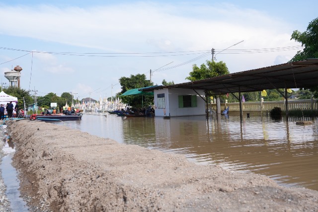 นายพงษ์นรา เย็นยิ่ง อธิบดีกรมโยธาธิการและผังเมือง เปิดเผยว่า จากการลงพื้นที่ตรวจติดตามสถานการณ์อุทกภัยในครั้งนี้ กรมฯ ได้รายงานความคืบหน้าการดำเนินการโครงการก่อสร้างระบบป้องกันน้ำท่วมพื้นที่ชุมชน ในอำเภอป่าโมก จังหวัดอ่างทอง ตั้งแต่เทศบาลตำบลป่าโมกถึงเขตองค์การบริหารส่วนตำบลโผงเผงแบ่งการดำเนินการออกเป็น 8 ช่วง พร้อมดำเนินการตั้งแต่ปี 2558 เป็นต้นมา โดยสถานการณ์ปัจจุบันโครงการระบบป้องกันน้ำท่วมพื้นที่ชุมชนป่าโมก ระยะที่ 1 และระยะที่ 2 ไม่มีน้ำล้นระดับคันป้องกัน สามารถป้องกันพื้นที่ได้มากกว่า 5 ตารางกิโลเมตร สำหรับพื้นที่ชุมชนโผงเผงที่มีสถานการณ์น้ำท่วมในพื้นที่เนื่องจากโครงการระบบป้องกันน้ำท่วมทั้ง 4 ระยะ มีจุดที่ยังไม่ปิดล้อมพื้นที่ประกอบกับมีเขตก่อสร้างประตูน้ำคลองบางหลวง ปัจจุบันกรมโยธาธิการและผังเมืองได้รับการจัดสรรงบประมาณดำเนินการอีก 2 ช่วง คือ ชุมชนป่าโมก ระยะที่ 3 (ปี 2569-2571) พื้นที่ป้องกัน 1.32 ตารางกิโลเมตร และพื้นที่ชุมชนโผงเผง ระยะที่ 5 (ปี 2568-2570) มีพื้นที่ป้องกัน 2.14 ตารางกิโลเมตร รวมทั้งงบประมาณในการซ่อมแซมโครงการระบบป้องกันน้ำท่วมพื้นที่ชุมชนโผงเผงระยะ 3 และระยะ 4 ซึ่งเมื่อโครงการแล้วเสร็จสมบูรณ์ จะสามารถป้องกันน้ำท่วมพื้นที่ได้รวม 9.88 ตารางกิโลเมตร
