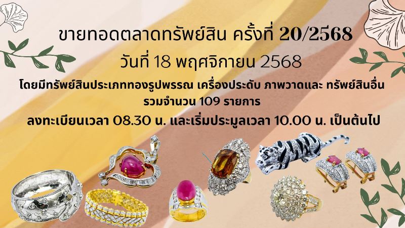 ปปง. ขายทอดตลาดทรัพย์สินประเภททองรูปพรรณ เครื่องประดับ ภาพวาด และทรัพย์สินอื่น ในวันที่ 18 พ.ย. 68 นี้