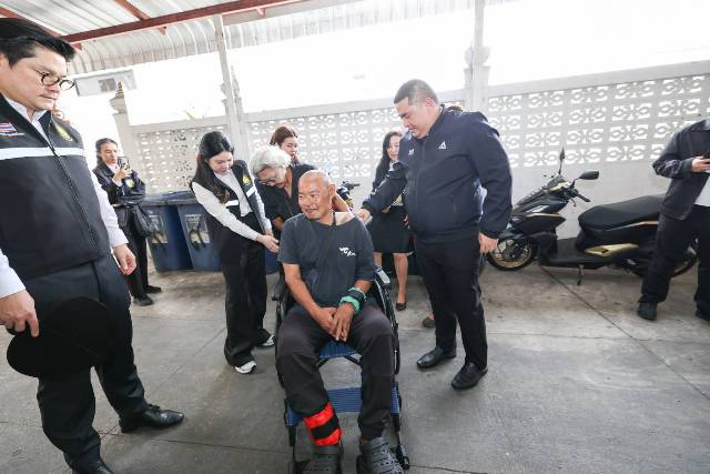 จากนั้น ได้เดินทางไปตรวจเยี่ยมบ้านผู้ประกันตนที่ทุพพลภาพ ณ ตรอกวัดระฆังโฆสิตาราม เขตบางกอกน้อย ที่อยู่ในการดูแลของสำนักงานประกันสังคมกรุงเทพมหานครพื้นที่ 5 เพื่อเยี่ยมให้กำลังใจผู้ประกันตนที่อยู่ระหว่างพักฟื้นและได้รับสิทธิประโยชน์จากสำนักงานประกันสังคม จำนวน 1 ราย ได้แก่ นายศุภกร ชุดบุญธรรม อายุ 47 ปี เป็นผู้ประกันตนมาตรา 39 ทุพพลภาพจากอาการลมชัก เส้นเลือดในสมองตีบ เป็นเหตุให้แขนขาซ้ายอ่อนแรง สูญเสียสมรรถภาพ ในการทำงานของร่างกายร้อยละ 65 ได้รับสิทธิเป็นผู้ทุพพลภาพตั้งแต่วันที่ 26 ตุลาคม 2567 ได้รับเงินทดแทนการขาดรายได้เดือนละ 2,400 บาท ตลอดชีวิต