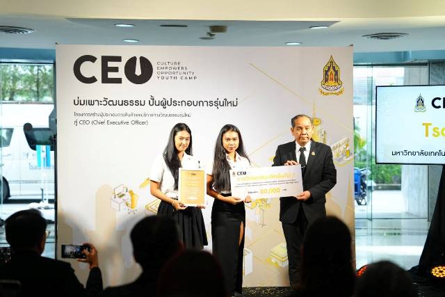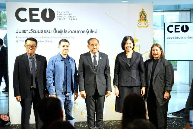 วันที่ 13 พฤศจิกายน 2568 นายประสพ เรียงเงิน ปลัดกระทรวงวัฒนธรรม เป็นประธานพิธีมอบรางวัลโครงการสร้างผู้ประกอบการสินค้าและบริการทางวัฒนธรรมรุ่นใหม่สู่ CEO (Chief Executive Officer) ภายใต้แนวคิด “CEO : Culture Empowers Opportunity – Youth Camp วัฒนธรรมสร้างโอกาส สู่ผู้นำรุ่นใหม่” ณ หอศิลปวัฒนธรรมแห่งกรุงเทพมหานคร (หอศิลปกรุงเทพฯ) โดยมีนางสาวรานี อิฐรัตน์ ผู้ช่วยปลัดกระทรวงวัฒนธรรม อาจารย์ ดร.ศรายุทธ แสนมี ผู้อำนวยการสำนักงานบริการวิชาการ นางสาวปารีสา จาตนิลพันธ์ ที่ปรึกษา corporate partnership management บริษัท สยามพิวรรธ์ จำกัด นายธรชัย ศุภเมธีกูลวัฒน์ Design Director แบรนด์ Qualy ผู้บริหาร แขกผู้มีเกียรติ และสื่อมวลชน เข้าร่วม ณ หอศิลปวัฒนธรรมแห่งกรุงเทพมหานคร ภายในงานมีการแสดงศิลปวัฒนธรรม การมอบประกาศนียบัตรและเงินรางวัลแก่ผู้ได้รับการคัดเลือก การจัดแสดงผลงานของนิสิต นักศึกษา และกิจกรรมการเจรจาธุรกิจ (Business Matching) ระหว่างผู้ประกอบการรุ่นใหม่กับเครือข่ายพันธมิตร