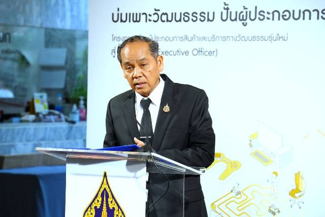นายประสพ กล่าวว่า ในช่วงที่ผ่านมา กระทรวงวัฒนธรรม (วธ.) ได้ดำเนินโครงการอบรมเชิงปฏิบัติการสร้างผู้ประกอบการสินค้าและบริการทางวัฒนธรรมรุ่นใหม่สู่ CEO (Chief Executive Officer) ภายใต้แนวคิดวัฒนธรรมสร้างโอกาส สู่ผู้นำรุ่นใหม่” ซึ่งเป็นเวทีสำคัญในการส่งเสริมให้เยาวชนไทยนิสิต นักศึกษา ได้พัฒนาศักยภาพในการนำทุนทางวัฒนธรรมมาต่อยอดเป็นสินค้าและบริการที่มีคุณค่า สามารถแข่งขันได้ในตลาดยุคใหม่ และสร้างความยั่งยืนในด้านเศรษฐกิจ สังคม และสิ่งแวดล้อม โครงการนี้เน้นการเรียนรู้ผ่านกระบวนการคิดเชิงออกแบบ (Design Thinking) การสร้างแรงบันดาลใจ และการลงมือปฏิบัติจริง โดยผู้เข้าร่วมได้รับความรู้จากวิทยากรผู้ทรงคุณวุฒิและผู้ประกอบการต้นแบบ พร้อมทั้งเข้าร่วม กิจกรรมหลากหลาย อาทิ การศึกษาดูงาน ณ ศูนย์นวัตกรรมSCG HOME Experience การระดมความคิดสร้างสรรค์ และการฝึกฝนทักษะการเข้าใจผู้บริโภคจากรากวัฒนธรรม (Empathize) เพื่อวางรากฐานแนวคิดธุรกิจที่ลึกซึ้งและมีเอกลักษณ์ นอกจากนี้ โครงการยังเปิดโอกาสให้ผู้เข้าร่วมได้สร้างเครือข่ายกับผู้ประกอบการวัฒนธรรมรุ่นใหม่ และเตรียมความพร้อมในการก้าวสู่การเป็น “ผู้นำวัฒนธรรม” ที่สามารถขับเคลื่อนเศรษฐกิจสร้างสรรค์ของไทยได้อย่างมีประสิทธิภาพ